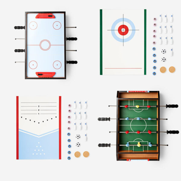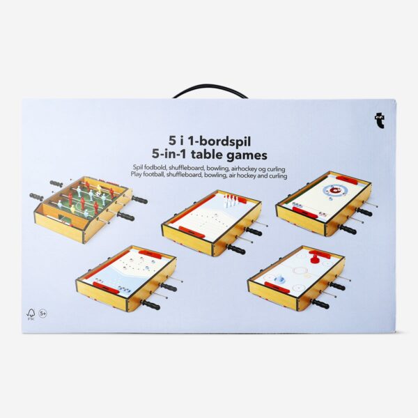 Enjoy endless entertainment with this 5-in-1 table games set. Measuring 51 x 9.5 x 31 cm, this multi-coloured wooden set features five classic games in one: football, shuffleboard, bowling, air hockey, and curling. Perfect for game enthusiasts, this versatile set is ideal for family gatherings, parties, or friendly competitions. The compact design allows for easy storage and setup, making it a great addition to any game room. Challenge your friends and family to hours of fun with this big 5-in-1 table games set, offering a variety of activities to keep everyone engaged.