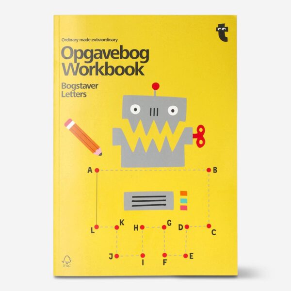 Activity book with letters and 65 stickers. 24 pages. Measures 30 x 21 cm.