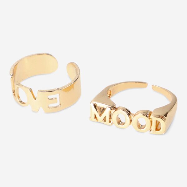 Elevate your personal style with our adjustable gold rings set, including 2 rings measuring 1.9 x 0.6 cm each. These charming rings feature delightful mood text and smiling moodie designs, adding a touch of personality to your jewellery collection. They are the perfect addition to your personal care and fashion accessories. Embrace versatility and enhance your look with this exquisite set of adjustable rings.