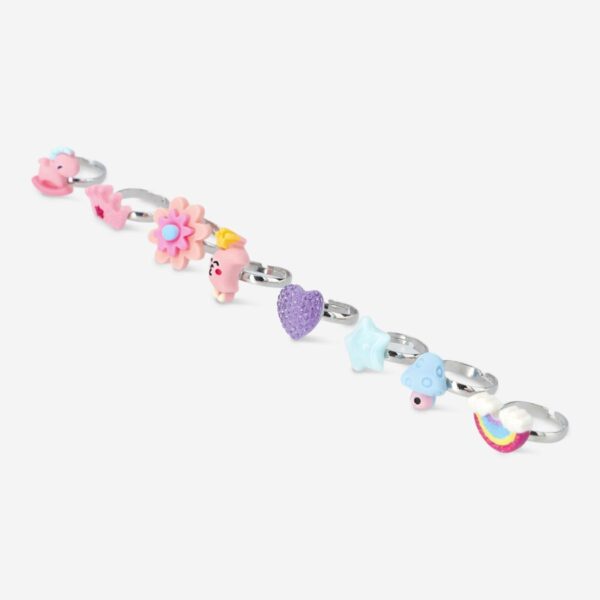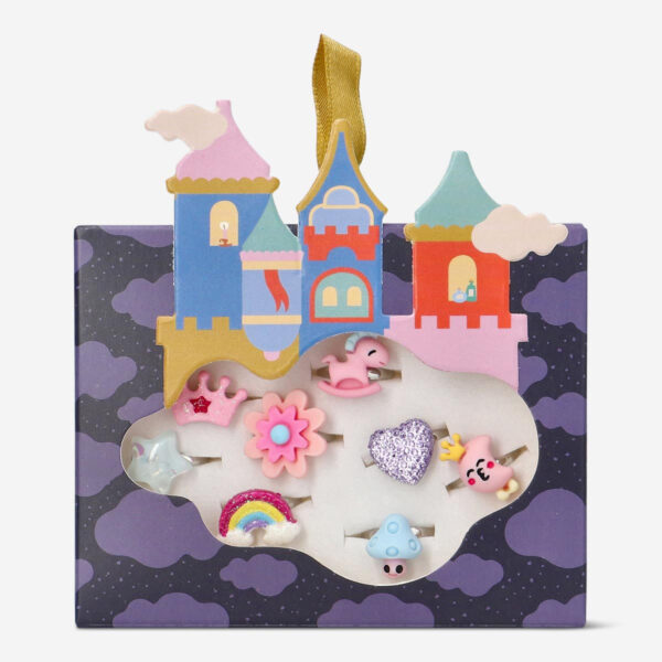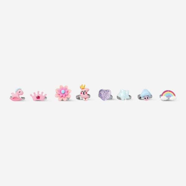 Bring a touch of magic to any child’s day with this set of adjustable rings for kids. Featuring eight delightful designs, including unicorns, rainbows, and hearts, these multi-coloured plastic rings add a whimsical flair to any outfit. Each ring is adjustable, ensuring a comfortable fit for little fingers. The set comes beautifully packaged in a castle-themed gift box, making it an ideal present for birthdays, holidays, or special occasions. Measuring around 2.3 cm by 1.8 cm by 1.6 cm, these charming rings encourage imaginative play and self-expression, allowing kids to accessorise with a touch of fantasy and style.