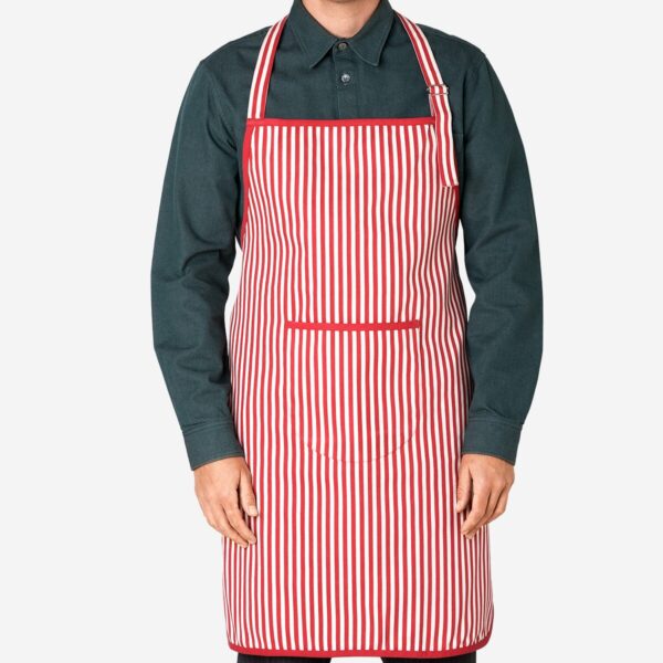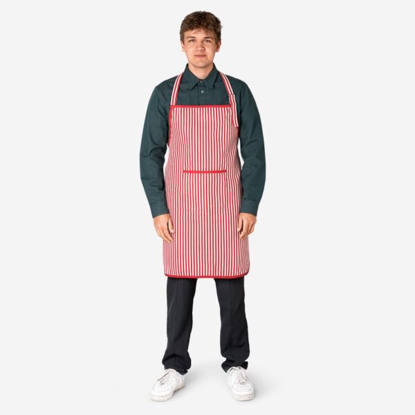 Look stylish and stay clean in the kitchen with this red adult apron! Measuring 64 x 82 cm, it features white stripes and is made from 100% cotton. Let your culinary adventures shine as you wear this comfortable red and white striped apron. Cook with flair and ease using this delightful kitchen essential!