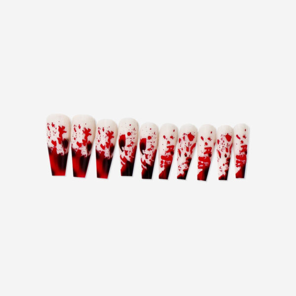 Add a dramatic finishing touch to your Halloween look with this artificial nails set featuring a chilling blood splatter design. Each set includes 24 red stick-on nails in assorted sizes to suit various nail shapes, making them ideal for completing any spooky costume or dress up transformation. Measuring 1.4 x 3.3 x 0.6 cm, these nails are packaged in a distinctive coffin-shaped box, enhancing their eerie appeal. The set comes with self-adhesive tape for quick and easy application, eliminating the need for glue or mess. Whether you are attending a costume party or enhancing your Halloween makeup, these blood spatter nails are a bold and stylish cosmetic choice for a haunting impression.
