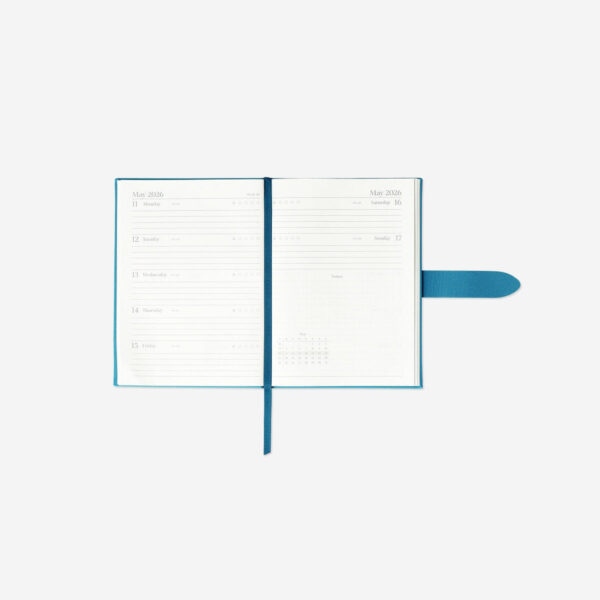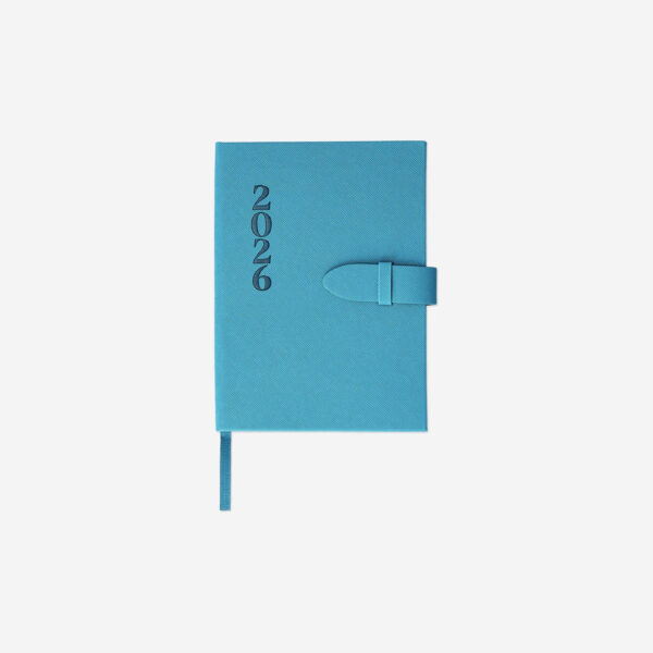 Organise your week with the b6 teal weekly diary 2026 in English, measuring 13x18x1 cm. This calendar is designed for convenient planning with a fresh blue cover and a sleek faux leather texture, made from plastic. It features a practical weekly layout that helps structure your appointments, deadlines, and notes across the year. With a discreet fastening tab, your pages stay neatly closed in your bag or drawer. The front cover showcases the year 2026 in stylish gold print, adding a refined touch to its design. Whether used for school, work, or personal scheduling, this weekly diary offers a functional yet refined solution to keep track of everything that matters throughout the year.