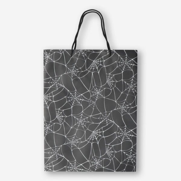 The decorative black gift bag with a spooky spiderweb motive is perfect as a gift bag for your Halloween party. The bag is made of 100% recycled plastic and measures 33 x 25 x 11 cm.