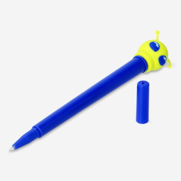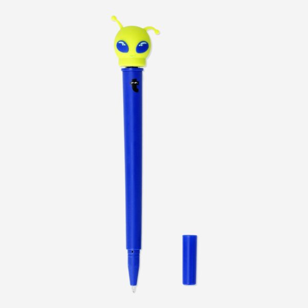 Bring a touch of extraterrestrial excitement to your writing with this blue ballpoint pen, sized 3 x 17 x 2.5 cm. Topped with a spinning green alien, it’s bound to add some playful spins to your penmanship. This pen is out-of-this-world fun for note-taking, scribbling, or just as a cosmic companion on your desk.