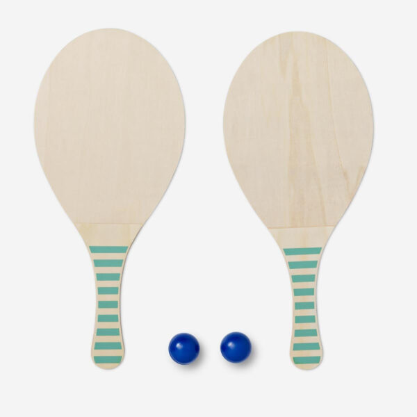 Looking for a fun and exciting way to spend your days at the beach? Look no further than our amazing beach tennis set! This set is perfect for adults who are looking for a fun and challenging game to play in the sun. The set includes two beige bats made from 100% wood with stylish blue stripes on the hand grip. The set also comes with two balls, so you can start playing right away. This beach tennis set is sure to provide you with hours of fun in the sun!