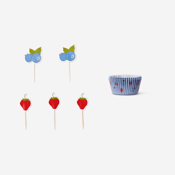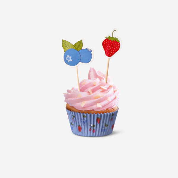 Create delightful treats with this charming cupcake set, perfect for enhancing your party’s dessert table. The set includes paper cupcake liners and adorable toppers featuring strawberry and blueberry decorations. Each liner measures 5 x 3.3 cm and is crafted from food-safe paper, making it suitable for baking up to 180°C. The included toppers are designed with printed berry designs attached to wooden toothpicks, adding a fun and festive touch to your cupcakes. Ideal for birthdays, picnics, and celebrations, this food decoration set elevates your dessert presentation effortlessly. Whether for home baking or party planning, this set combines practicality and decoration in one delightful package.