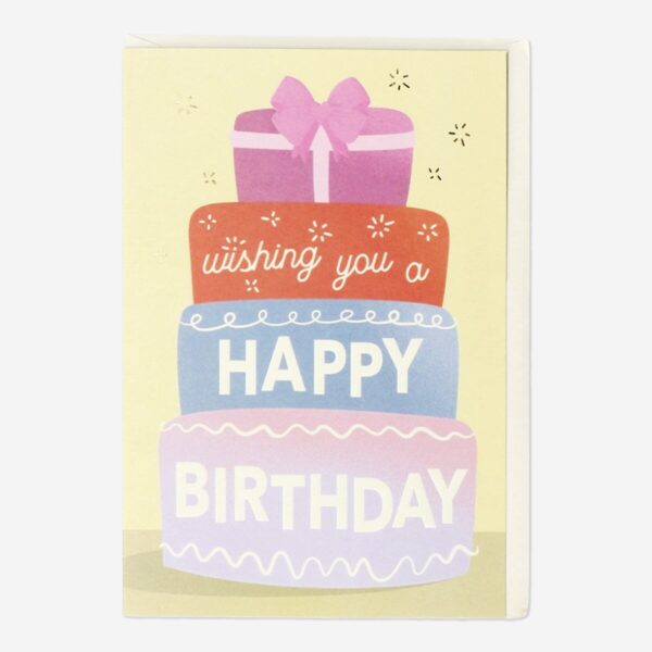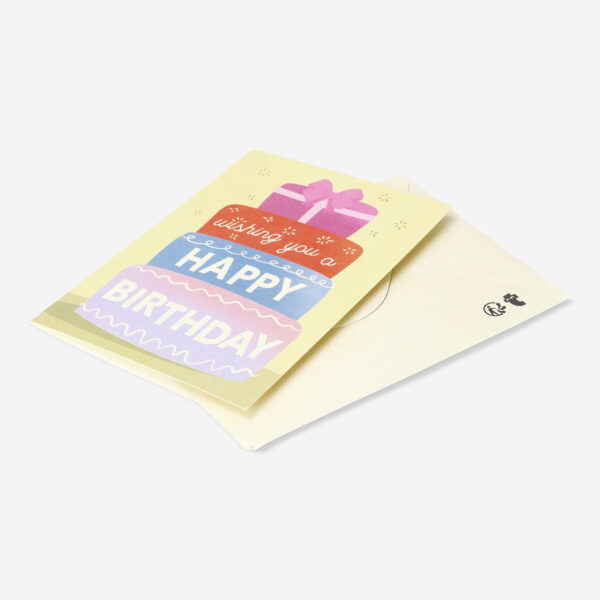 Celebrate someone’s special day with this vibrant birthday cake card with envelope. Measuring 11.5 x 17 x 0.2 cm, this delightful card features a colourful and cheerful birthday cake design accompanied by the message “Wishing you a Happy Birthday.” Made from paper, it provides a smooth surface for writing a heartfelt note inside. The matching envelope ensures a complete and ready-to-gift package, making it a thoughtful addition to any birthday celebration. Perfect for family, friends, or colleagues, this card combines style and sentiment to create a lasting impression. Add a personal touch to your greetings with this charming birthday card and make their day extra special.