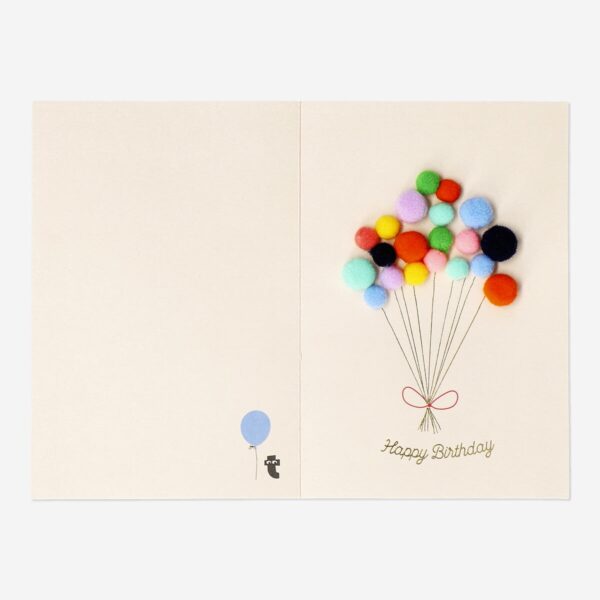 Add a playful touch to birthday celebrations with this charming card featuring colourful pom pom balloons. Measuring 11,5 x 17 x 0,8 cm, this festive card showcases a delightful balloon bouquet with fun pom pom embellishments that bring the design to life. Perfect for sending heartfelt birthday wishes, the vibrant pom poms create a unique 3D effect, adding a cheerful and tactile element to the card.