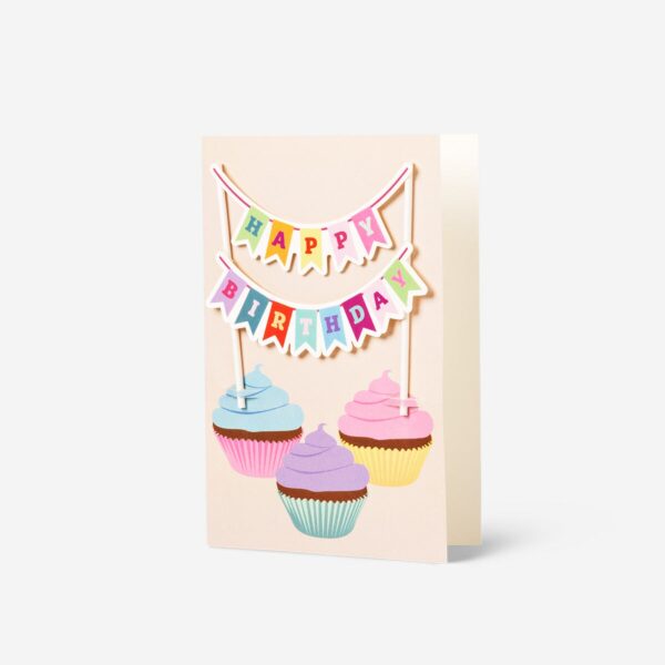 Add sweetness to any celebration with this birthday cupcakes card featuring a charming multi-coloured design. Made from paper, it measures 11.5 x 17 x 0.4 cm and comes with a matching envelope for convenient gifting. The card showcases delightful cupcake illustrations alongside a cheerful “Happy Birthday” decoration banner, making it a perfect choice for spreading joy on someone’s special day. This card’s unique design adds a playful and decorative touch, making it stand out among other greetings. Ideal for birthdays, this card ensures your wishes are delivered with style and thoughtfulness. Pair it with a gift or send it on its own for a heartfelt surprise.
