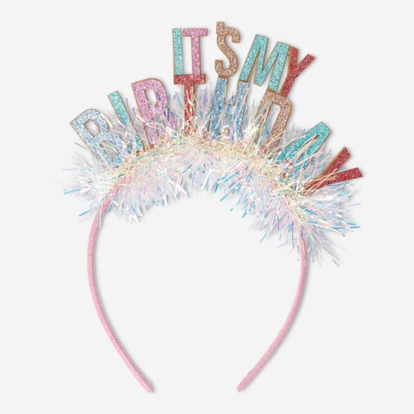 Celebrate your birthday with style! Invite friends and family to your birthday celebration and dress up with the colourful birthday hairband. The hairband is made of plastic and polyester. The hairband fits adult size and measures 21 x 18 x 1 cm.