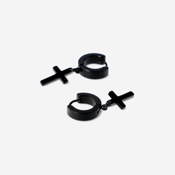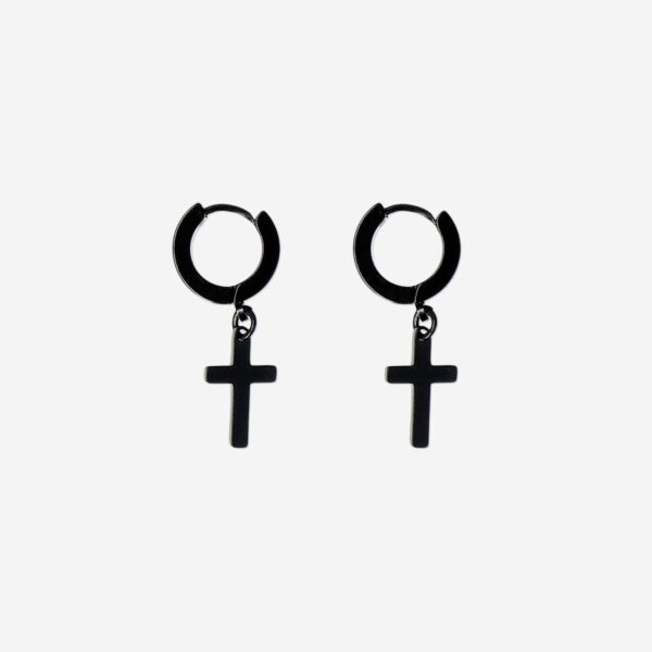 Add an edgy twist to your accessory game with these black cross earrings. Designed for effortless style and versatility, each earring measures 1,3 x 3,2 x 0,4 cm and is made from metal with a sleek black finish. The minimalist hoop design paired with dangling crosses creates a bold statement perfect for everyday looks or special occasions. These earrings bring a dark elegance that complements autumn styles and Halloween outfits alike. Whether worn alone or layered with other pieces, they deliver a modern gothic flair ideal for trend-forward wardrobes. A great choice for enhancing seasonal fashion with a hint of mystery and charm.