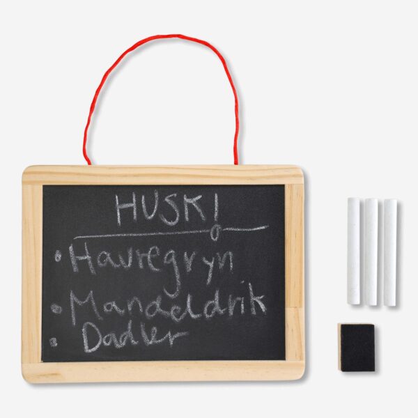 The black surface offers high contrast for clear and legible writing, making your notes easy to read at a glance. The included chalk pieces come in a classic white colour, ideal for all your writing and drawing needs. The small sponge is perfect for quick and easy erasing, keeping your blackboard clean and ready for new ideas.