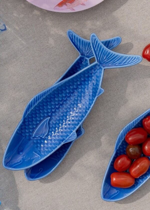Bring a touch of coastal charm to your table with this blue fish serving plate. Measuring 26.1 cm in length, 8.9 cm in width, and 2.6 cm in height, this ceramic tray is shaped like a fish, making it a unique choice for serving appetisers, seafood dishes, or snacks. The tray features a textured surface that enhances its ocean-inspired design. Crafted from ceramics, it is suitable for food and safe for use in the microwave and dishwasher, ensuring both convenience and style. Whether for casual gatherings or themed dining settings, this beautifully detailed plate adds a nautical touch to any tableware collection.