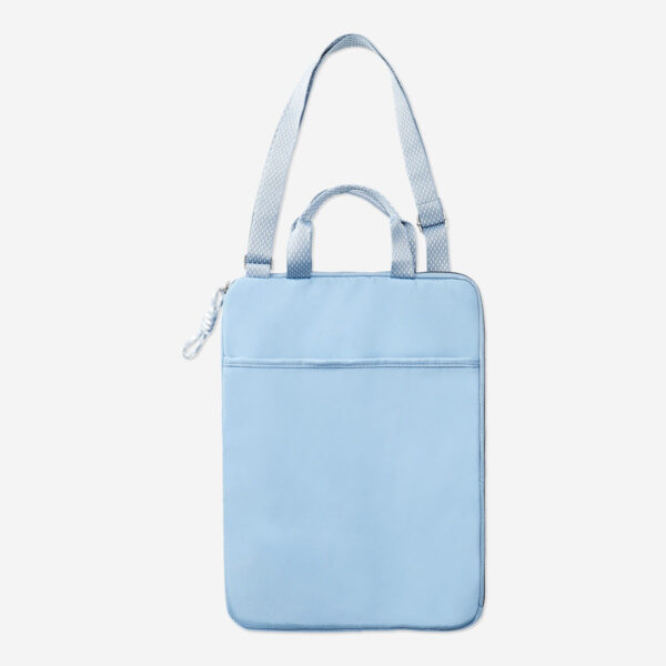 Keep your laptop protected and portable with this light blue laptop sleeve featuring a practical carry strap. Measuring 28.5 x 38.5 x 2 cm, this sleek sleeve is designed to fit most standard laptops, offering protection against scratches and minor impacts. Crafted from lightweightpolyester, it is both functional and stylish. The convenient carry strap makes it easy to transport your device, whether you are commuting, travelling, or heading to work or school. The soft light blue exterior adds a modern and professional touch to your computer. Ideal for everyday use, this laptop bag is a perfect blend of portability, practicality, and style.