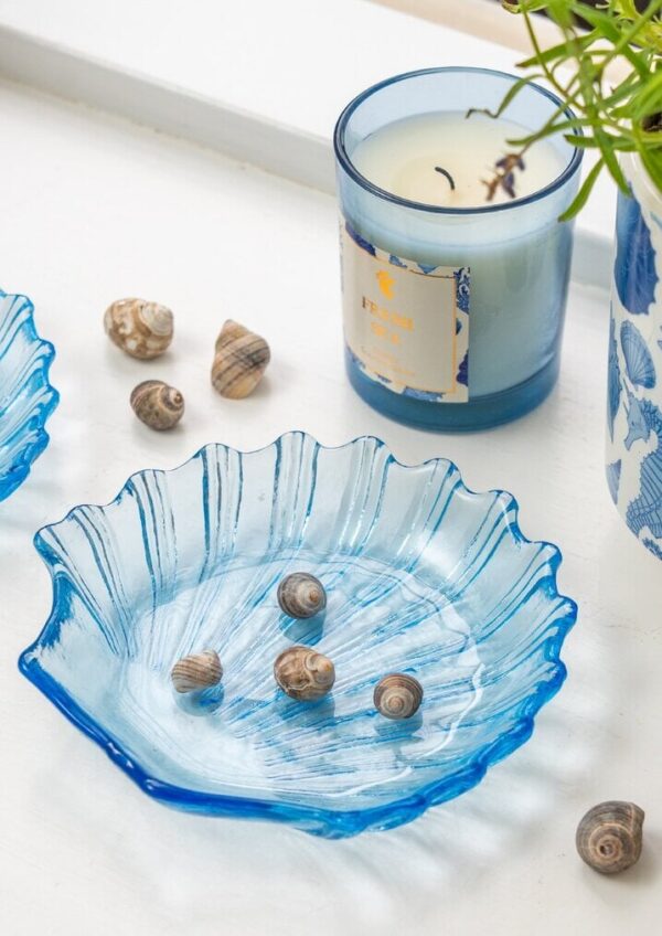 Bring a touch of the ocean to your table with this blue seashell bowl, a stylish and functional piece for serving snacks, appetisers, or desserts. This bowl features a delicate shell-inspired design, adding a coastal charm to any dining setting. Measuring 12.8 cm in width and 2.3 cm in height, it is the perfect size for small servings or decorative use. Made from glass, it is suitable for food and safe for the dishwasher, ensuring easy cleaning and convenience. Whether used for everyday meals or special occasions, this elegant blue bowl enhances any tableware collection with its unique design and seaside-inspired aesthetic.