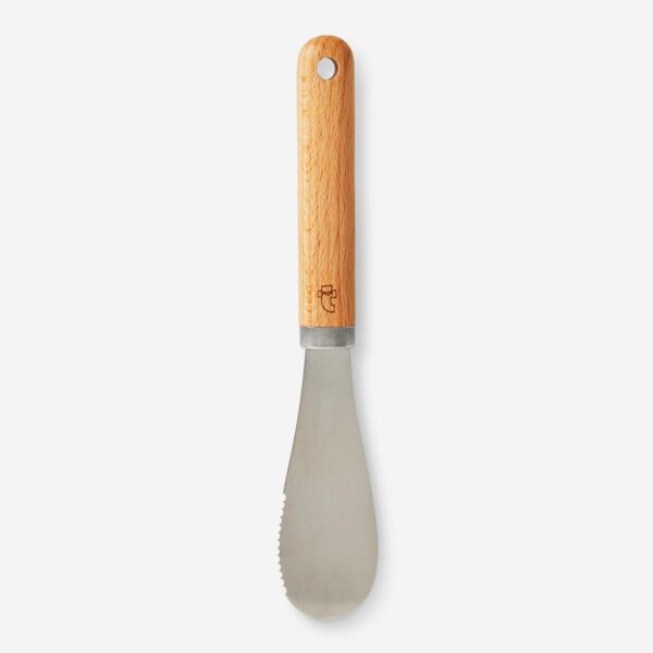 Butter knife in beech and stainless steel. Winner of IDA design Awards 2017 and European Product Design Award 2018. Measures 21 cm.