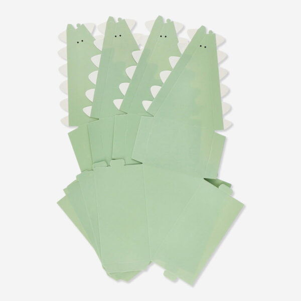 These charming crocodile-themed cake boxes are a delightful addition to any party! Each green box, measuring 16 x 8 x 10 cm, is crafted from food-safe paper, making them perfect for holding treats. A delightful addition to any eating and drinking occasion, this set of four cake boxes are as functional as they are playful.