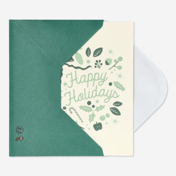 Share joy with our cards and envelopes pack! This set includes 5 cards measuring 11.5 x 17 cm, each adorned with a festive design. Spread holiday cheer with these Happy Holidays cards and send warm wishes to friends and family. These cards come complete with envelopes, ready for your heartfelt messages.