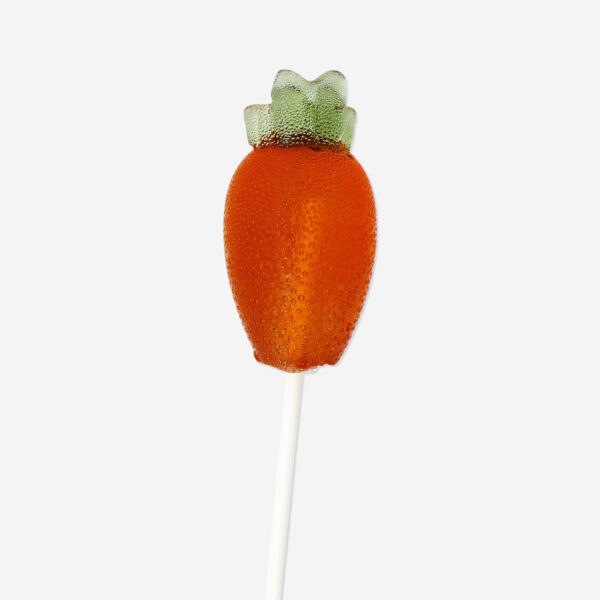 Add a playful touch to your Easter celebrations with this carrot-shaped lollipop. Weighing 28 g, this orange delight is a festive treat perfect for holiday parties or as a sweet snack. Made from delicious hard candy, it brings a burst of sweetness in every lick, making it an ideal indulgence for candy lovers. Its adorable carrot shape makes it a unique addition to Easter baskets or as a delightful party favour to share with friends and family. Perfect for gifting, sharing, or enjoying yourself, this festive lollipop is an Easter essential that adds a bit of fun and enjoyment to any holiday celebration.