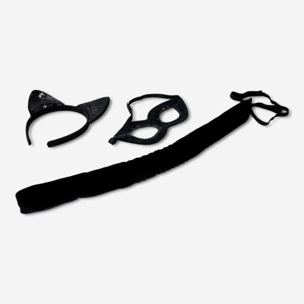 Complete your Halloween look with these cat costume accessories, designed for adults. This set includes a sequined cat ear headband, a stylish mask, and a plush tail measuring 48 x 3.7 x 3.7 cm. Perfect for adding a touch of mystery and fun to any outfit, these adult costume accessories are ideal for Halloween parties and themed events. The sleek black design ensures versatility, while the comfortable fit makes it easy to wear all night long. Enhance your spooky ensemble with these essential Halloween add-ons and be the purr-fect feline at your next gathering.