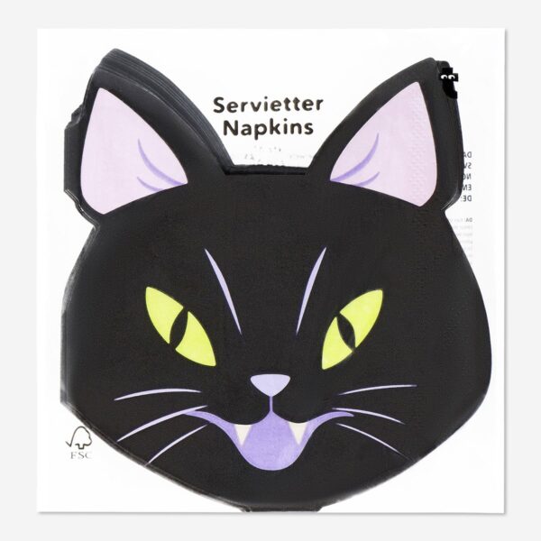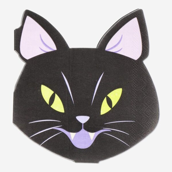 Enhance your Halloween party with these adorable cat-shaped napkins. Measuring 14 x 13 x 0.2 cm, each pack includes 16 black napkins, perfect for adding a spooky touch to your table setting. Ideal for both kids and adults, these Halloween napkins are not only fun but also practical, being suitable for food use. Whether you are hosting a themed party or just looking to add some festive flair to your mealtime, these spooky serviettes are sure to impress your guests. Make your Halloween celebrations extra special with these charming cat-shaped napkins.
