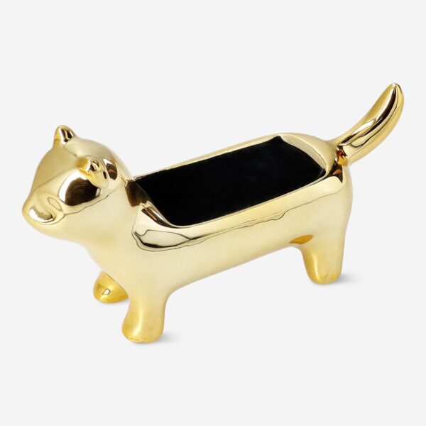 Organise your rings with this charming cat-shaped ring holder. Measuring 14 x 7.4 x 4 cm, this elegant gold holder is crafted from ceramics, adding a touch of sophistication to your interior decoration. Perfect for storing and displaying your rings, this delightful cat-shaped holder is both functional and decorative. Ideal for cat lovers, it brings a playful yet stylish element to your vanity or dresser. Enhance your home decor and keep your jewellery neatly displayed with this adorable cat-shaped ring holder.