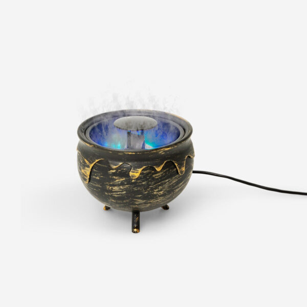 Create an eerie atmosphere with this cauldron fog machine. This black Halloween fog machine measures 10 x 11 cm and features a colour-changing LED light for a spooky effect. Perfect for Halloween decorations, it doubles as an LED mist maker, adding a mystical touch to your setup. Enhance your Halloween decor with this captivating fog machine.