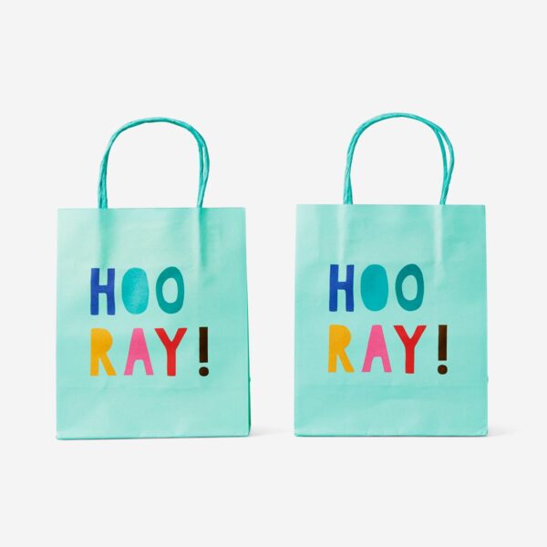 In summary, these green gift bags with “Hoo Ray!” text are an excellent choice for any gift-giving occasion. Their vibrant colour, convenient handles, and perfect size make them a versatile and attractive option for presenting your gifts. Add a splash of joy to your celebrations with these delightful gift bags.