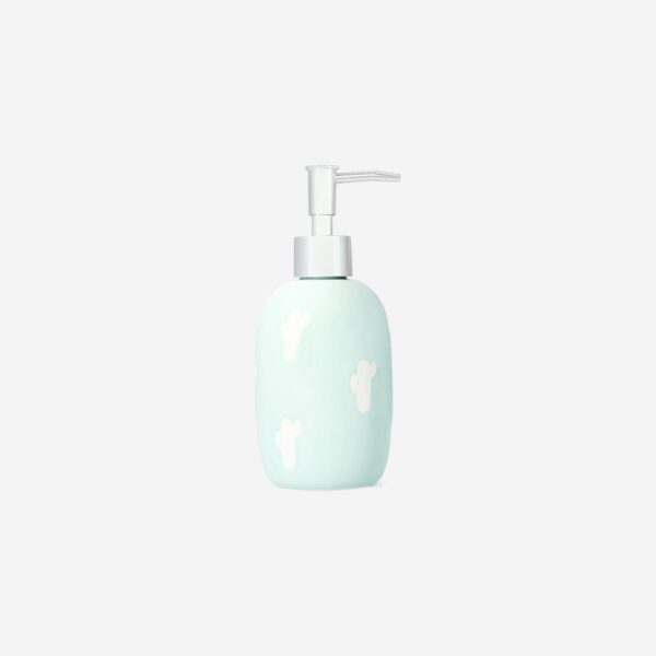 Introduce a playful yet practical accent to your bathroom or kitchen with this ceramic soap dispenser with cactus print. Designed in a soft green hue and adorned with charming cactus motifs, it effortlessly blends function with cheerful style. Made from ceramics and measuring 7.6 x 17.7 cm, this dispenser is compact yet spacious enough to hold an ample amount of liquid soap or lotion. The sleek metallic pump ensures smooth dispensing while adding a modern touch. Ideal for everyday use, it brings a light-hearted, desert-inspired detail to your home practical essentials. Whether placed by the sink or on a vanity, it promises both convenience and decorative flair.