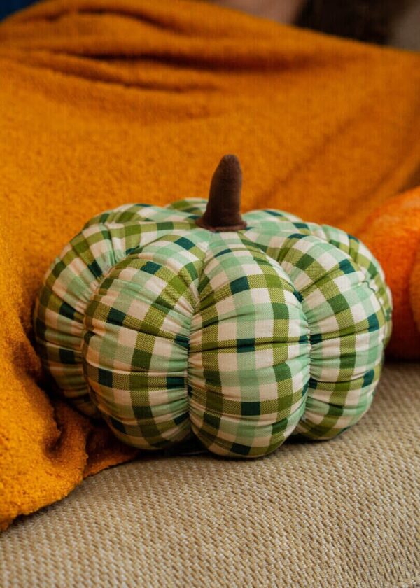 Add a cosy seasonal accent to your home with this checkered pumpkin cushion, perfect for autumn gatherings and Halloween decor. With its soft shape and classic pattern in green-toned checks, it brings warmth and charm to sofas, chairs or entryway benches. Measuring 22 x 15 cm, it is crafted from cotton and designed to resemble a plump pumpkin, making it an inviting addition to your seasonal textiles. Whether used as a playful centrepiece or nestled among other cushions, it offers both comfort and style. A delightful choice for celebrating the colours and textures of autumn in any living space.