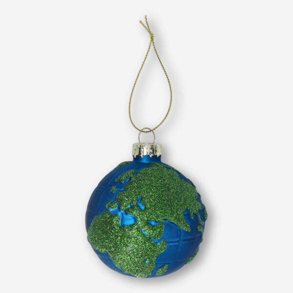 Celebrate the beauty of our planet with this Earth Christmas bauble! Measuring 6.7 x 7.5 x 6.7 cm, it is made of glass. This bauble resembles planet Earth in green and blue. Add a stunning element to your holiday decor with this unique Earth bauble!