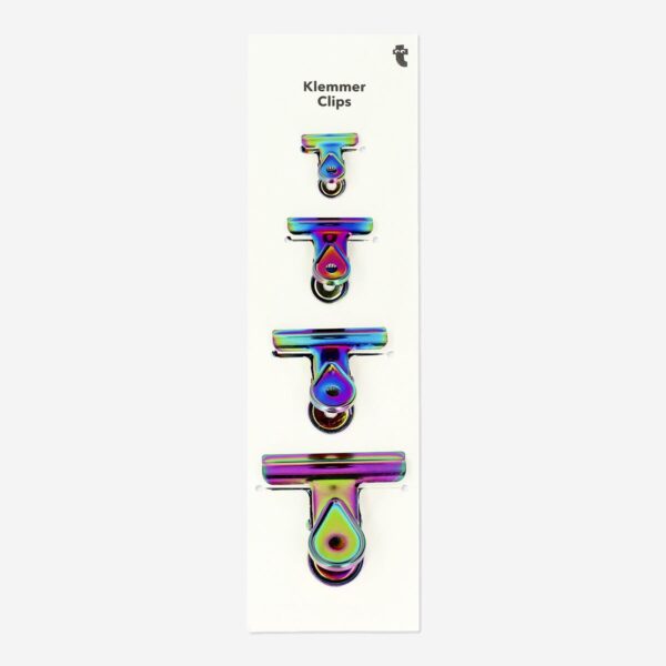 Add a pop of personality to your paperwork with these multi-coloured clips. The largest clip measures 4.5 x 5 x 3 cm, combining function with a touch of fun. This set of four is perfect for keeping your documents together with a flair of iridescence. Whether it’s for work, school, or just to organise your personal papers, these clips will ensure your pages stay paired.