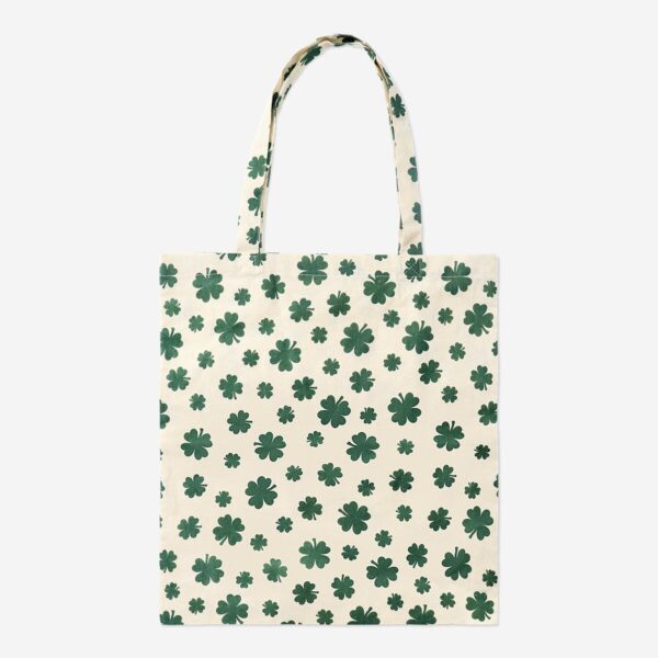 Embrace a touch of luck with this stylish clover tote bag, perfect for daily outings and errands. Measuring 37 x 41 cm, this versatile bag is crafted from cotton, offering a practical and reusable option for carrying your daily essentials. The chic green clover print adds a fashionable flair, making it a practical yet trendy choice for shopping, beach trips, or casual outings. Lightweight and easy to fold, this tote is designed to replace single-use bags effortlessly. Whether you need a stylish accessory or a functional bag for everyday use, this clover tote is the perfect blend of practicality and charm.
