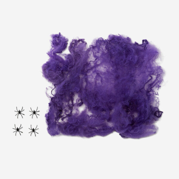 Add a spooky touch to your Halloween decorations with our cobweb with spiders in purple. This polyester cobweb measures 50×200 cm and comes with 4 spiders, perfect for creating a creepy atmosphere. Hang it around your home to spook your guests and set the scene for a hauntingly good time.