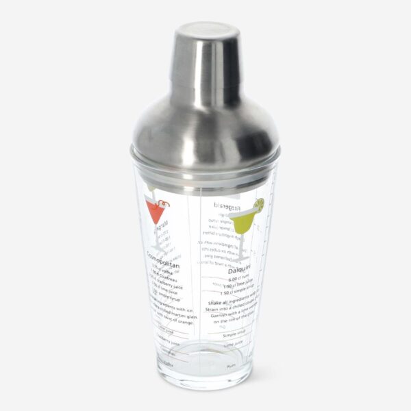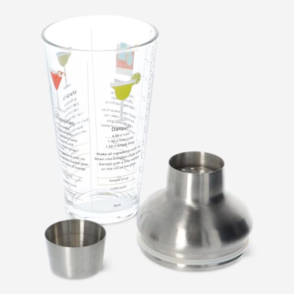 Upgrade your at-home bartending game with this cool cocktail shaker. With a capacity of 430 ml, it’s perfect for shaking up your favourite drinks. The glass cup is durable and can withstand temperatures up to 60 degrees Celsius. Measuring 21.3 cm in height and 8.8 cm in diameter, it’s easy to handle and store. Plus, it comes with recipes printed right on the side for added convenience. The stainless steel lid ensures a tight seal so you can shake with confidence. Elevate your cocktail experience with this sleek and functional shaker.
