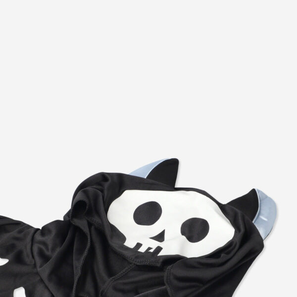 Let your little one embrace the spooky season with our black skeleton bat cape costume. Designed for children aged 4-8 years, this costume made from recycled polyester features a glow-in-the-dark bat cape that adds a thrilling touch. Whether for Halloween or dress-up fun, this costume will make your child stand out in style.