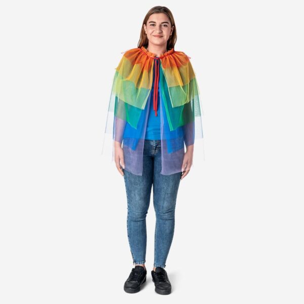 Dress up in style with our beautiful tulle cape in pride colours! The cape is made of polyester and measures 64 cm in length, providing a flowing and festive look. It’s perfect for adults and can be worn with any outfit to add a touch of rainbow colour. Whether you’re heading to a Pride parade or simply want to show off your pride, this tulle cape is a must-have accessory. With its lightweight and breathable fabric, you can comfortably wear it all day long. Order yours now and show off your true colours!