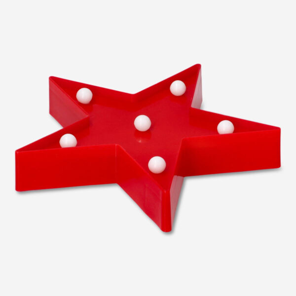 Decorative plastic cosy lamp with LED lights. 21% of all materials are recycled. Uses 3 x LR44 batteries (included). Measures 14.5 x 15.1 x 2.6 cm.