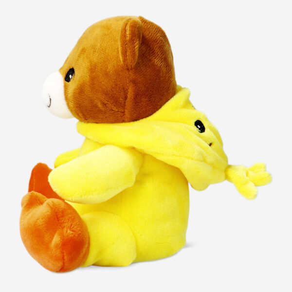 This cheerful teddy dressed as a chicken is a burst of sunshine in plush form. With its sunny yellow costume and adorable chicken hood, this multi-coloured cuddly friend measures 14 x 16 x 10 cm. It’s the perfect soft toy, making it a fun and lovable addition to any Easter basket or soft toy collection.
