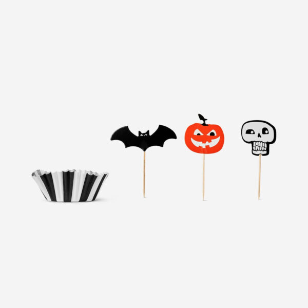 Set of 20 paper cake moulds and 12 decorative sticks.
