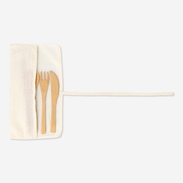 The nice cutlery set in bamboo is easy to have with you on the go for your upcoming day trip or picnic. The cutlery set includes a fork, knife, spoon and chopsticks, and the set comes in a cotton bag that measures 8 x 25 x 1 cm.