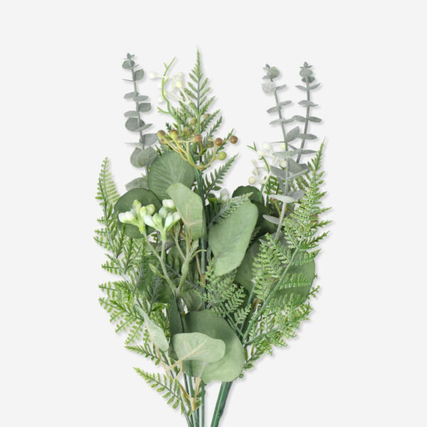 Add a touch of nature to your home decor with this beautiful and realistic decorative bouquet. The artificial green bouquet features small white berries and a variety of different leaves, all carefully crafted from plastic and metal materials to create a natural and lifelike appearance. Measuring 39 x 20 x 20 cm, this gorgeous bouquet is perfect for decorating any room in your home, from your living room to your bedroom. With no need for watering or maintenance, this artificial bouquet is a convenient and long-lasting alternative to fresh flowers. Bring the beauty of nature indoors with this stunning decorative bouquet.