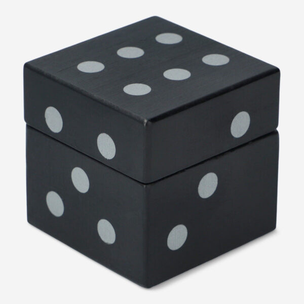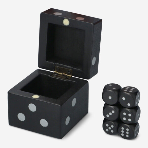 Roll the fun with our wooden box of dice! This set includes 6 black dice, housed in a charming wooden box with measurements of 6.5 x 6.5 x 6.5 cm. Whether for board games or other dice-based activities, this set adds a touch of classic enjoyment to your gaming experiences.