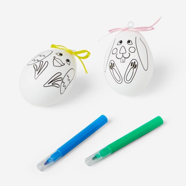Release your creativity during Easter and decorate your own Easter eggs. The DIY kit contains four eggs and four coloured markers.