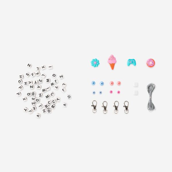 Create personalised keyrings with this DIY keyring bead set, perfect for school bags, backpacks, or gifts. The set includes alphabet beads, decorative charms, colourful beads, string, and keyring clasps, allowing for endless creative combinations. Made from polyamide, these beads are lightweight and easy to thread, making it a fun craft activity for those who love customising accessories. Whether spelling out names, fun words, or adding playful designs, this set is ideal for making unique keychains to attach to keys, bags, or pencil cases. A great addition to any beads and crafts collection, this kit offers a creative way to personalise everyday items with handmade designs.