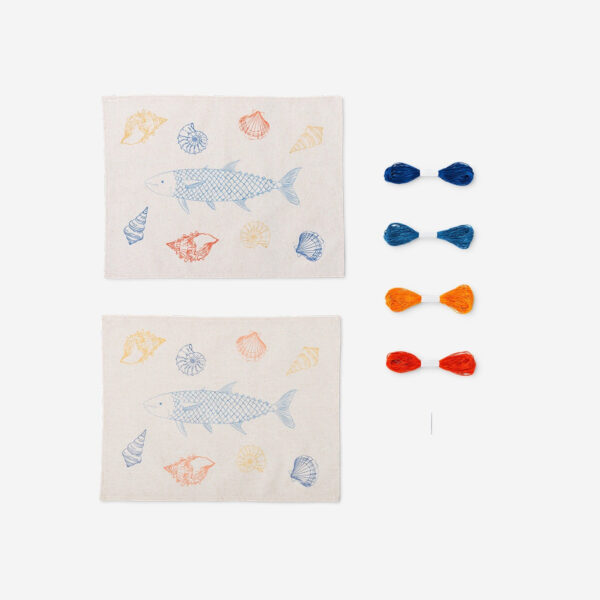 Add a handmade touch to your table décor with this DIY ocean embroidery placemat set. Featuring a charming fish design, this set includes two cotton placemats, each measuring 130 x 35 cm, perfect for adding a coastal theme to your dining space. The DIY kit allows you to personalise your table setting with embroidery, making it a fun and creative project for craft lovers. Whether you are new to embroidery or an experienced stitcher, this set provides an enjoyable way to create unique and decorative tableware. Ideal for gifting or personal use, these embroidered placemats bring a touch of the ocean to any meal.