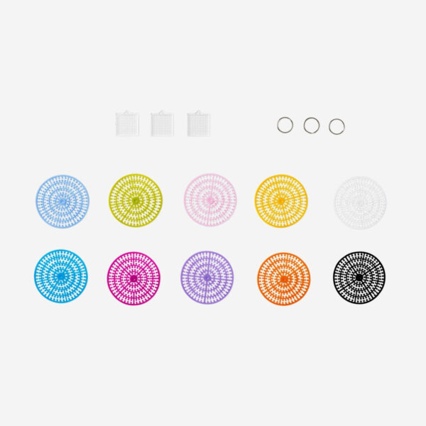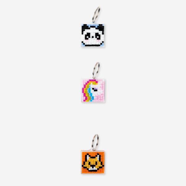 Design your own playful accessories with this creative push bead key ring kit. The set includes three colourful bases, each measuring 3,50 x 3,50 x 0,40 cm, and key rings, along with tiny push beads to bring your miniature pixel art designs to life. Ideal for anyone who enjoys hands-on hobbies, this kit invites you to make custom characters or patterns using the included templates or your own imagination. Whether added to bags, pencil cases or keychains, these vibrant designs are a fun way to show off your personality. A great project for crafting at home or with friends, and a delightful addition to any collection of beads and accessories.