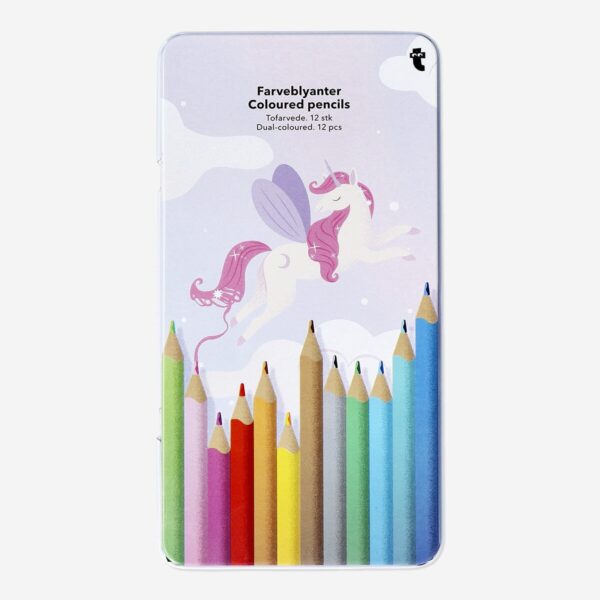 Enhance your creativity with this set of dual coloured pencils. Featuring 12 two-tone pencils, this multi-coloured set comes in a charming tin box measuring 204 x 115.5 x 1 cm. Each pencil offers two vibrant colours, making it perfect for drawing, colouring, and sketching. The metal tin box ensures your pencils are neatly stored and easily portable. Ideal for both children and adults, these dual coloured pencils provide a wide range of shades to bring your artwork to life. Add this versatile and colourful set to your stationery collection for endless creative possibilities.