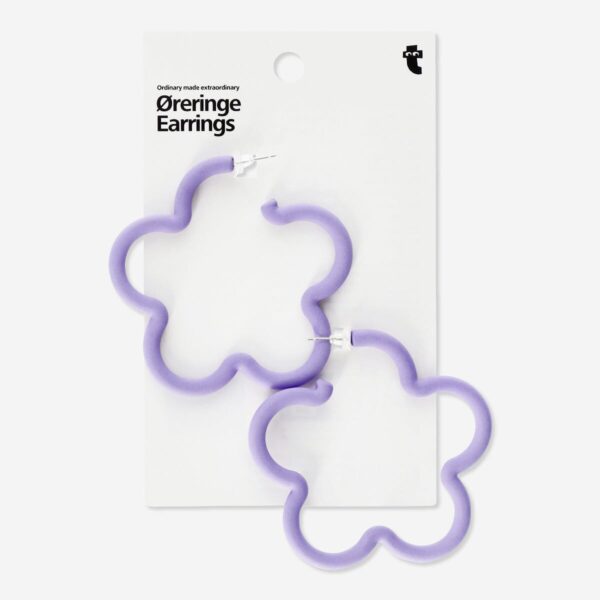 Infuse your look with a touch of floral charm with these purple hoop earrings, featuring a large flower outline. Made from metal and coated with silicone for a smooth finish. Measuring 6.5 cm in diameter and with a slim profile, these earrings are a delightful statement piece that adds a splash of playful elegance to any ensemble.